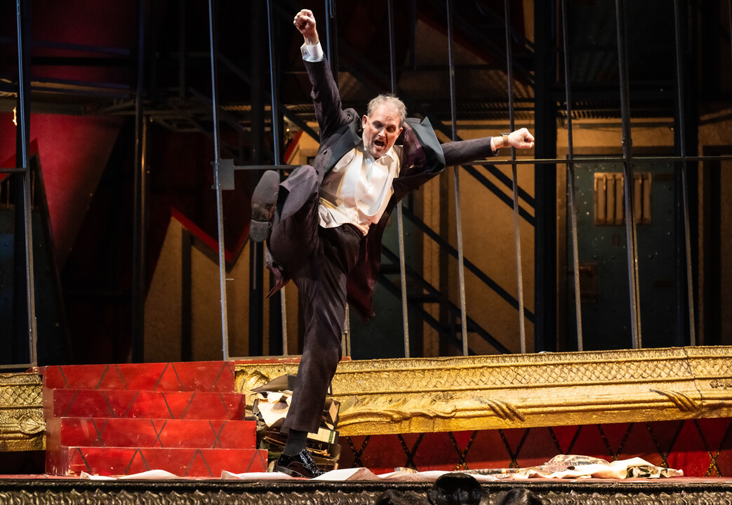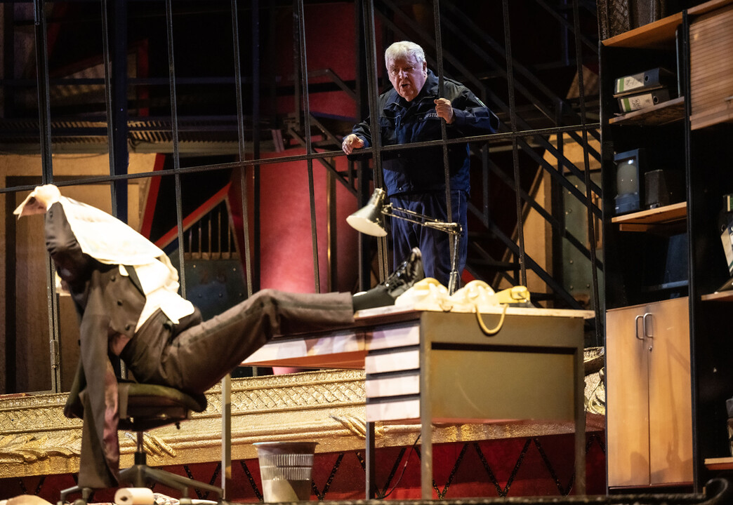 One by one the party finds its way to the city prison. Director Frank wishes to begin his first day at work, Adele is searching for the benefactor who promised the night before to finance her training and Eisenstein discovers that he is already behind bars. He feels cheated on by Rosalinde. She responds by flourishing his watch under his nose and demands a divorce. Falke turns up with all the other guests from the party and saves the situation. Eisenstein discovers that everything has been part of Falke’s elaborate scheme for revenge. He and Rosalinde make up and everyone agrees to blame the champagne.