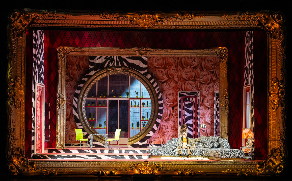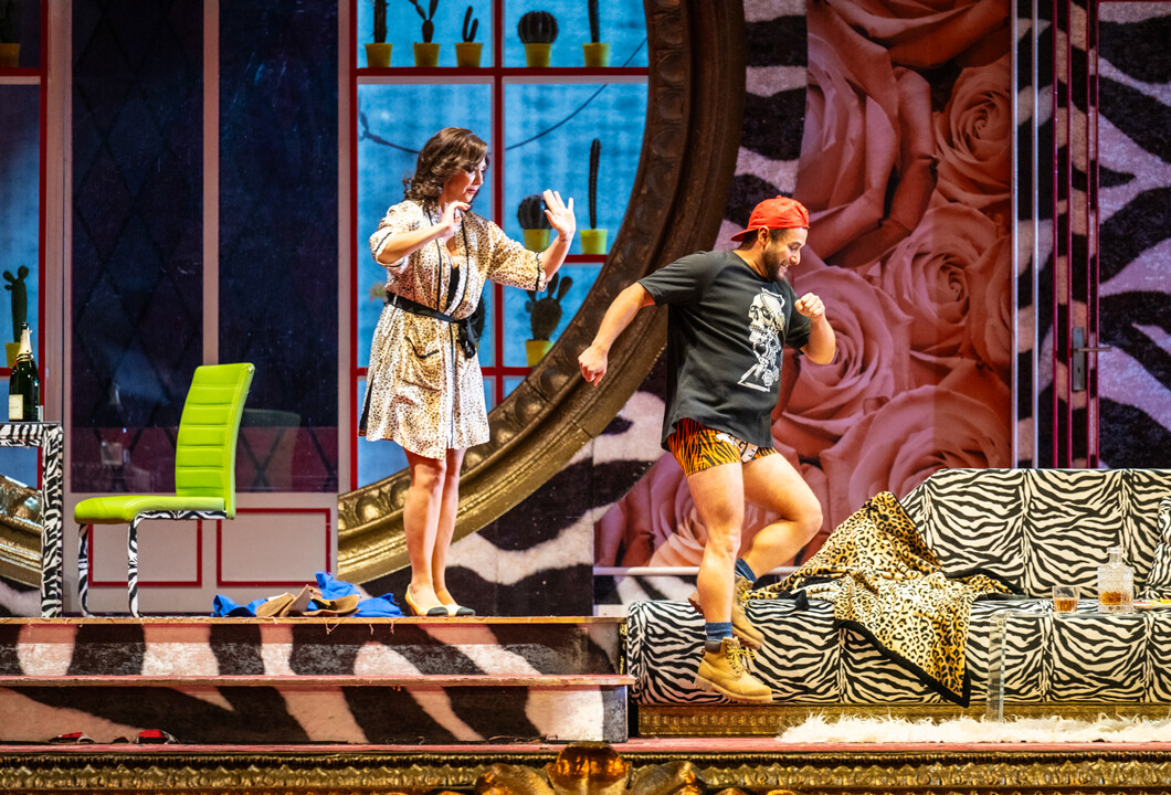 Adele, the Eisensteins’ housekeeper, has been invited to a party held by the Russian Prince Orlofsky and very much wants the evening off. Rosalinde, the lady of the house, is being besieged at the front door with serenades by the tenor Alfred, the love of her youth. Her husband Gabriel von Eisenstein has to serve a prison sentence for insulting a government official. His friend Dr. Falke manages to persuade him to attend Orlofsky’s party and begin his sentence the day after. Eisenstein skips his farewell supper with Rosalinde and follows Falke to the party. Adele is given the night off and Rosalinde is able to receive Alfred who makes himself at home in Eisenstein’s dressing gown. The new prison director, Frank, who arrives to arrest Eisenstein in person, takes him for the master of the house. Alfred allows himself to be taken into custody in order not to expose Rosalinde.