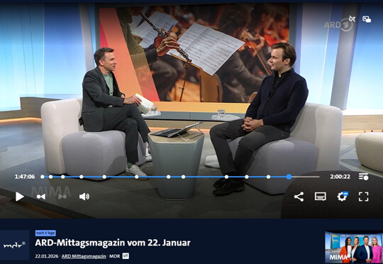 Unser Chefdirigent Vitali Alekseenok war am 22. Januar 2026, zu Gast im ARD-Mittagsmagazin. Das 12-minütige Gespräch mit vielen Aufnahmen (auch aus unseren Produktionen) beginnt gegen Ende der Sendung bei 1:44:50.