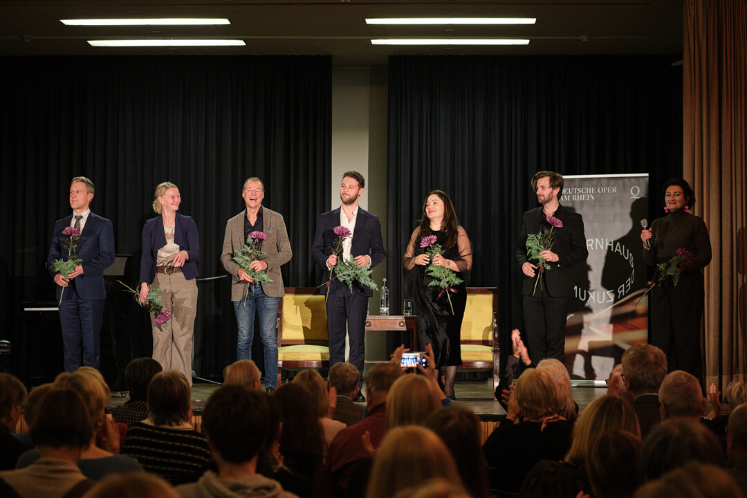Im Anschluss Gespräch mit Krysztina Winkel, Michaela Dicu (Leiterin Junge Oper am Rhein), Philipp Weinhausen (stellv. Direktor der Clara-Schumann-Musikschule Düsseldorf), Anton Kublin (Düsseldorfer Jugendrat) und Antonius Grützner (Musikbibliothek der Stadtbücherei Düsseldorf)