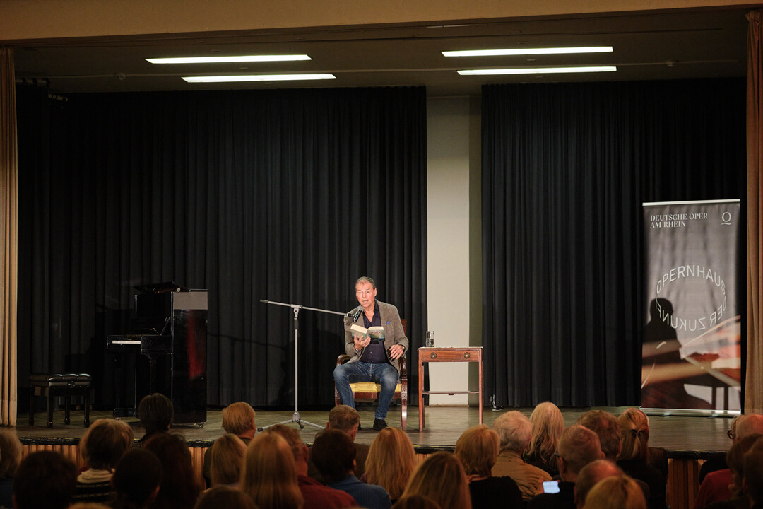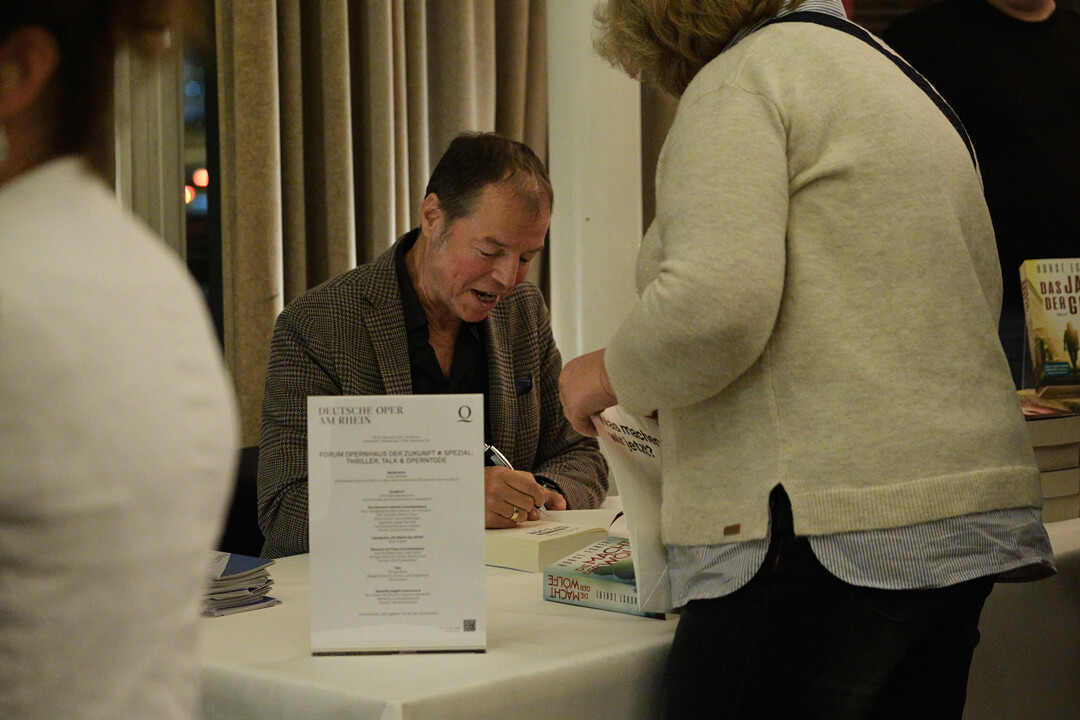 Wie es dazu kam, dass der Bau des neuen Opernhauses zum Ausgangspunkt seines Thrillers wurde und was ihn an der Oper fasziniert – darüber spricht Horst Eckert nach einer Lesung aus seinem Thriller mit der Beigeordneten für Kultur und Integration der Landeshauptstadt Düsseldorf, Miriam Koch. Mitglieder des Ensembles der Deutschen Oper sorgen mit blutrünstigen Opernmorden für das passende musikalische Rahmenprogramm.