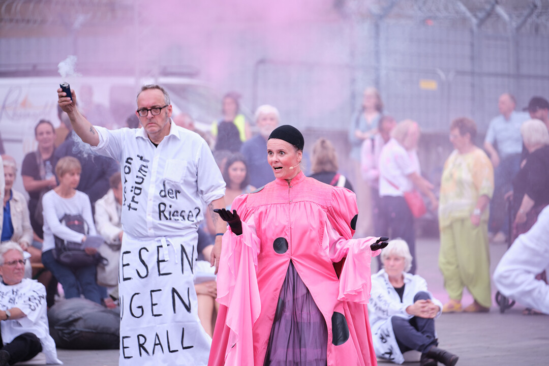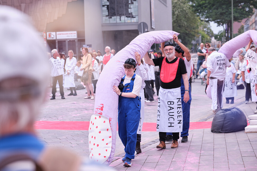 Schon ab dem 2. September verwandelt sich der Opernplatz in einer Reihe von zusätzlichen Veranstaltungen (Rahmenprogramm siehe unten) nach und nach zu einem Versammlungs- und Deklamationsplatz der Menschenrechte – wird ein Spielplatz für alle Menschenrechts-Riesen: hier ist jede*r eingeladen, Gedanken zu teilen, mitzuarbeiten, miteinander ins Gespräch zu kommen, kreativ zu werden.